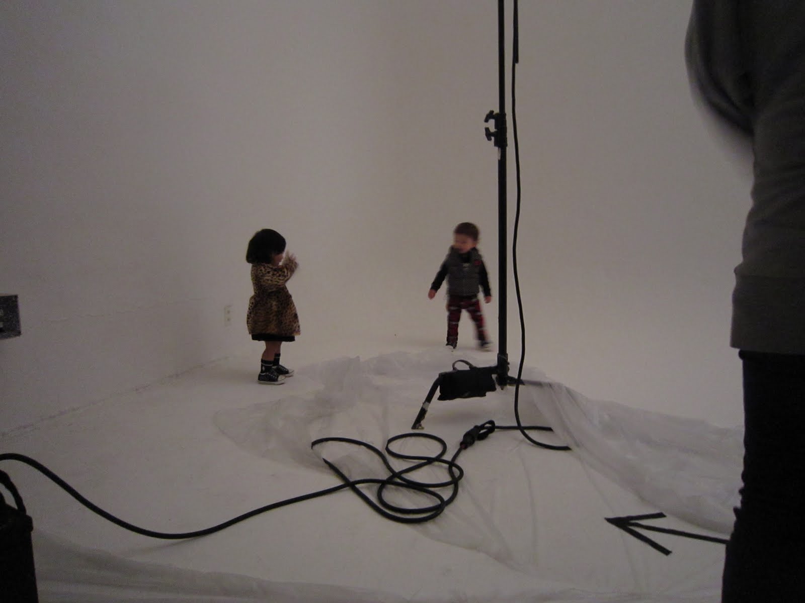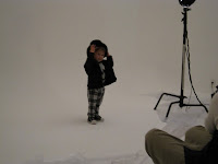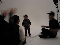 Sebaj, jön a rivaldafény! Hibikit felöltöztettük az első kollekcióba (a kettő közül) és irány a terem. Mondanom sem kell, kis kaszanovánkat már az első pillanattól kezdve letámadták a személyzet tagjai, még a fényképész srác is, aki később még egy puszit is kapott tőle. Na de, hisztis lurkónk a teremben még nyűgös volt, egészen addig amíg az első vaku villogás el nem kezdődött.