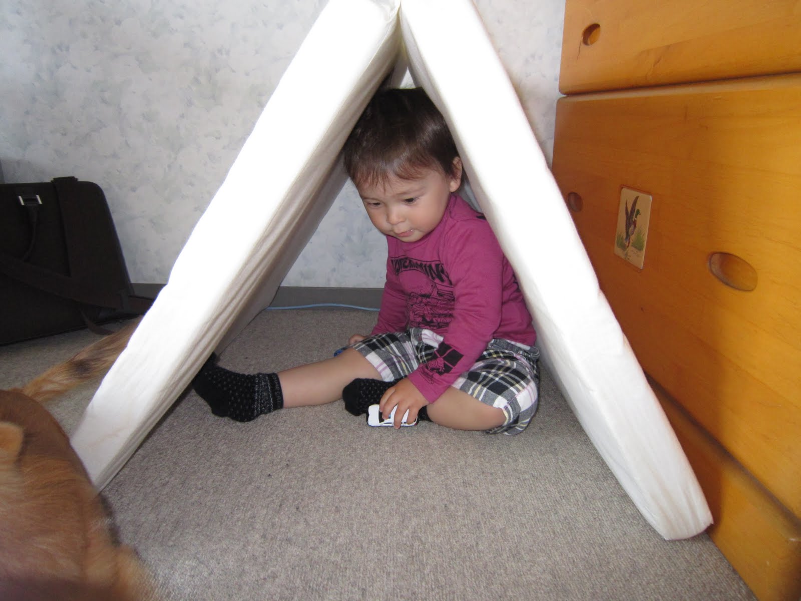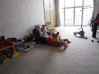 Ennek örömére képeket öltök fel. Nem is írok semmit, csak rövid leírást a képekhez, mert apósommal szakézgattunk, és kicsit a fejembe szállt. Neki is, mivel úgy mászott be Hibiki új labdás házába, amit anyósomtól kapott, hogy a feje a tetőn, karja az ablakon és a lába az ajtón lógott ki, és nagyon örült neki. Utána persze úgy megdögönyözte Hibikit, hogy levegőt alig kapott a kacagástól.
