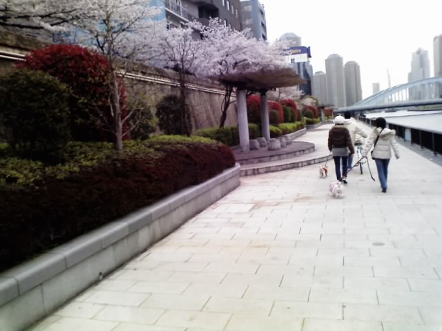 A harmadik kepen ket jaror lathato, amint setalgatnak a folyoparton. A negyedik kepen ugyanazon folyon robog ket hajo (meg vagy masik husz) szakura viragzaskor. Amirol persze keszitettem kepet, de tul nagy felbontasban es a telefonom nem tudja emailben elkuldeni. Az otodik kepen paromek setalnak a folyo partjan. Hibikit en tolom, ugyhogy nem szerepel a kepen.