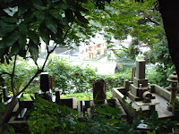 Van egy kép, ahol fák között valami fényes felé fényképezek. Az a fényes a napsütés, az nem is érdekes, de ami az előtérben van, az egy japán temető. Gondolom ez látszik a sírköveken. Párom mondta, szellem lesz a képen, de nem lett. (itt nagyon szellem-mániás mindenki, olyan mintha az egyik fizikai alaptétel lenne)