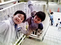 A két kis kölök éppen az uszoda bejáratánál pókembereskedik meg grimaszol. A bal oldali kissrác, itt ugyan elég fura fejet vág, szerintem rá sem ismerne magára, nagyo